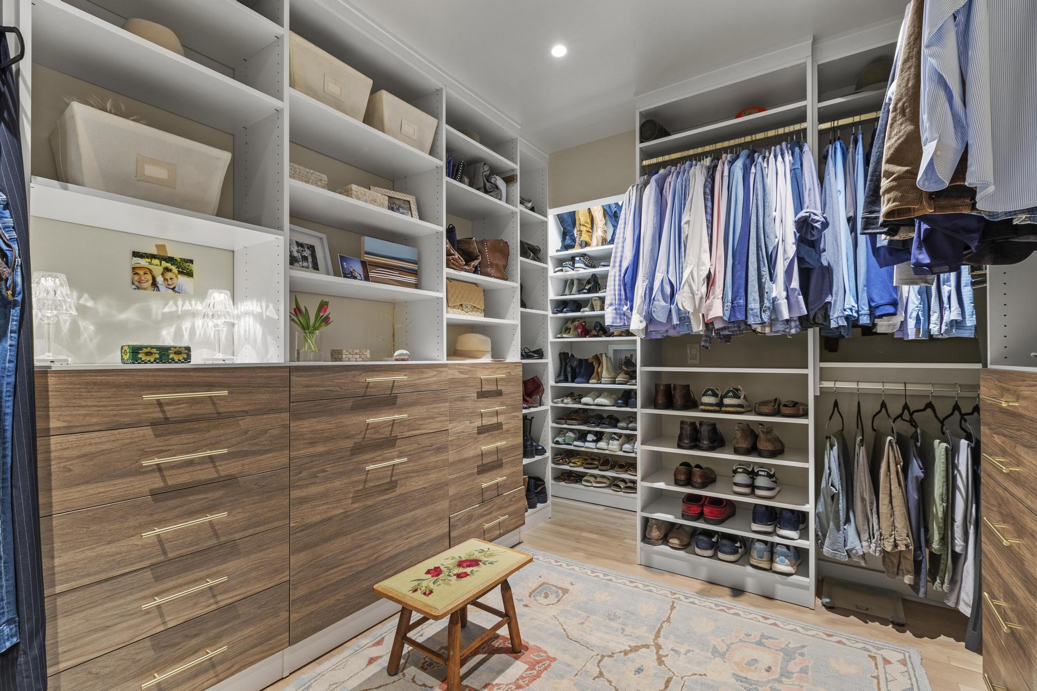 Custom display areas let you show off your favorite handbags, shoes, accessories, and statement pieces. This makes your display feel intentional and special. Creating a special area for your favorite items makes your closet feel more like a boutique than a storage room.