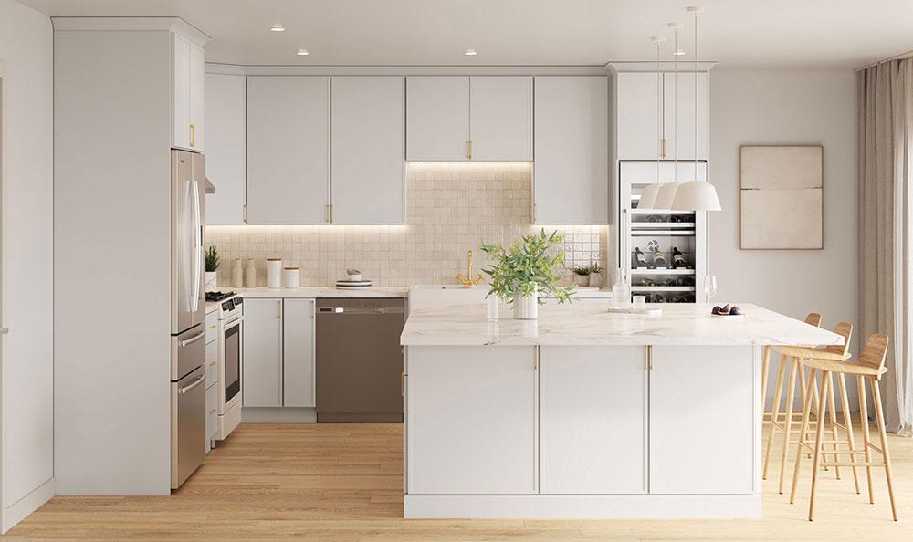 Shaker cabinets are a popular choice for many reasons. They are versatile and classic. They look great in traditional, transitional, and modern kitchens. Homeowners can choose a classic door style with timeless kitchen cabinet colors. They can also select a slim shaker profile (which is a cabinet style that is rising in popularity) for a mix of tradition and modern style. The Designery has options for both design preferences.