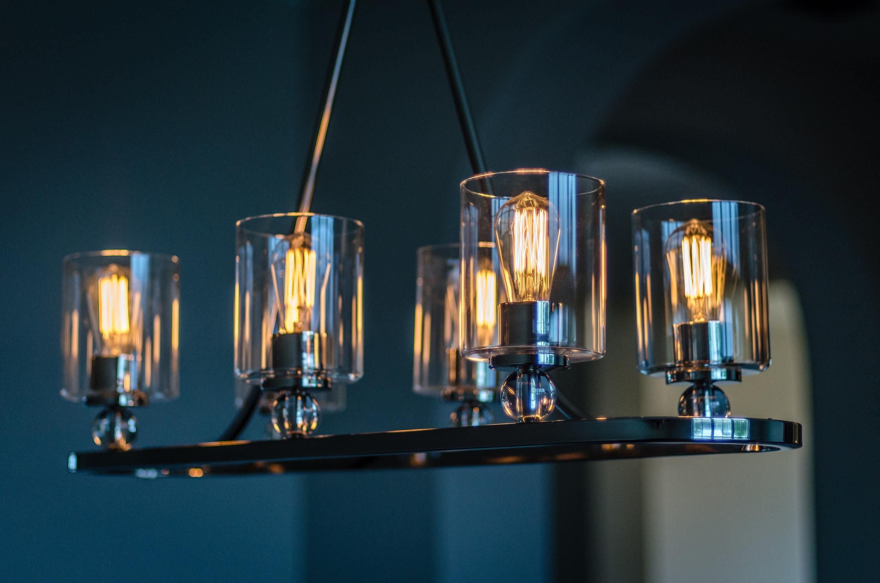 Switch standard dome lights and any fluorescence for something warmer. Find a stylish fixture that appears to throw soft candlelight. From there, add soft under-cabinet task lighting.
