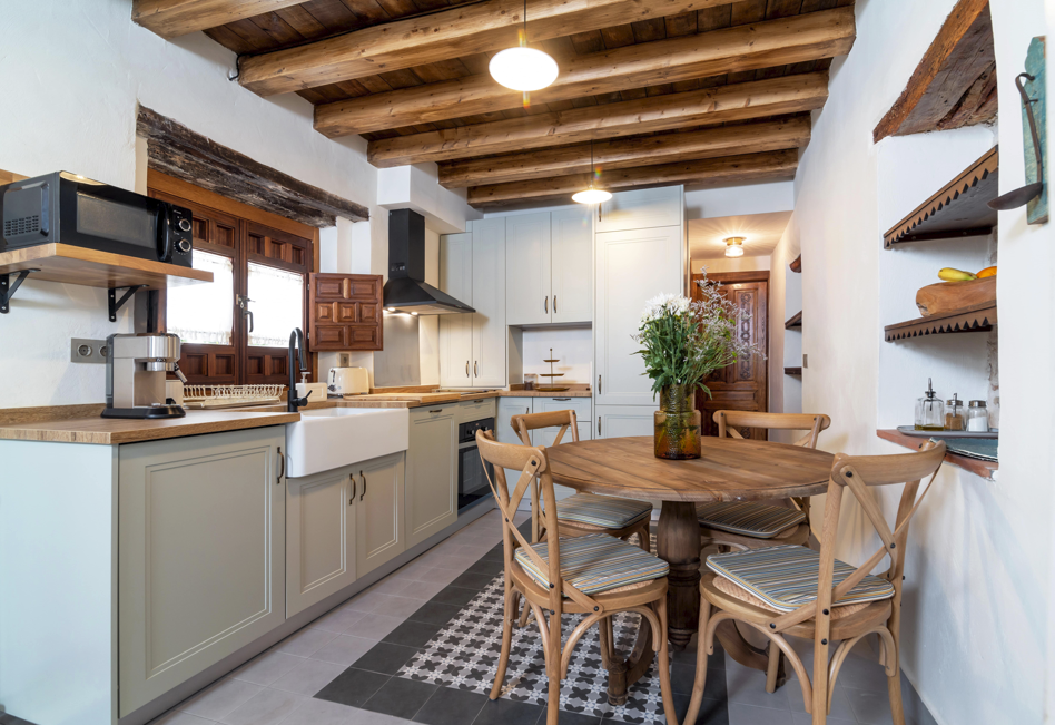 Cottage kitchens get much of their charm from how welcoming they are. Add a small dinette set or banquette breakfast nook along a wall to inspire warm afternoon coffee chats. Don’t forget the flowers!