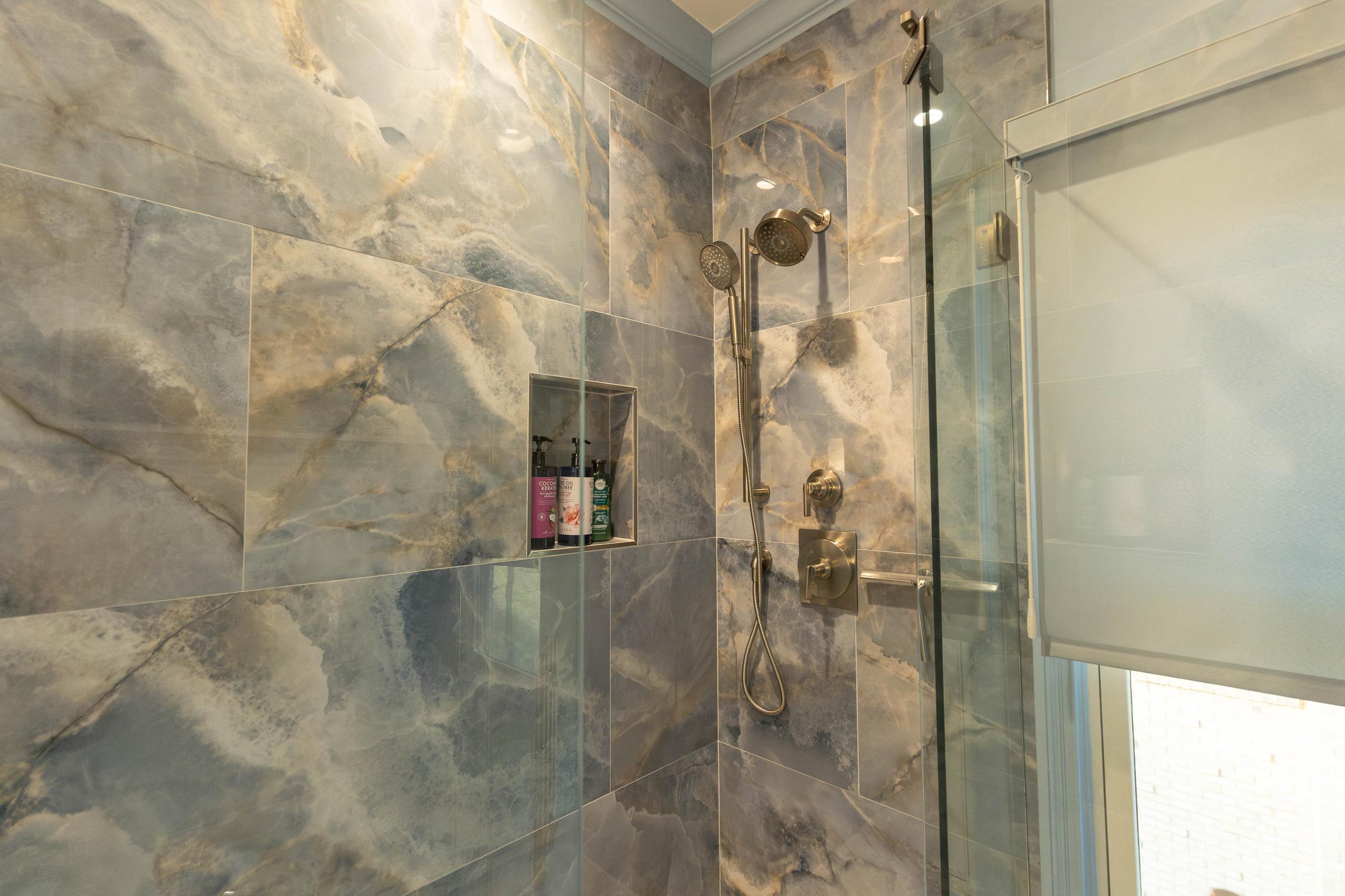 Few other bathroom design elements have built up steam the way shower tiles have. Large-format stone tile is everywhere this year, but fortunately, it has tons of design versatility.