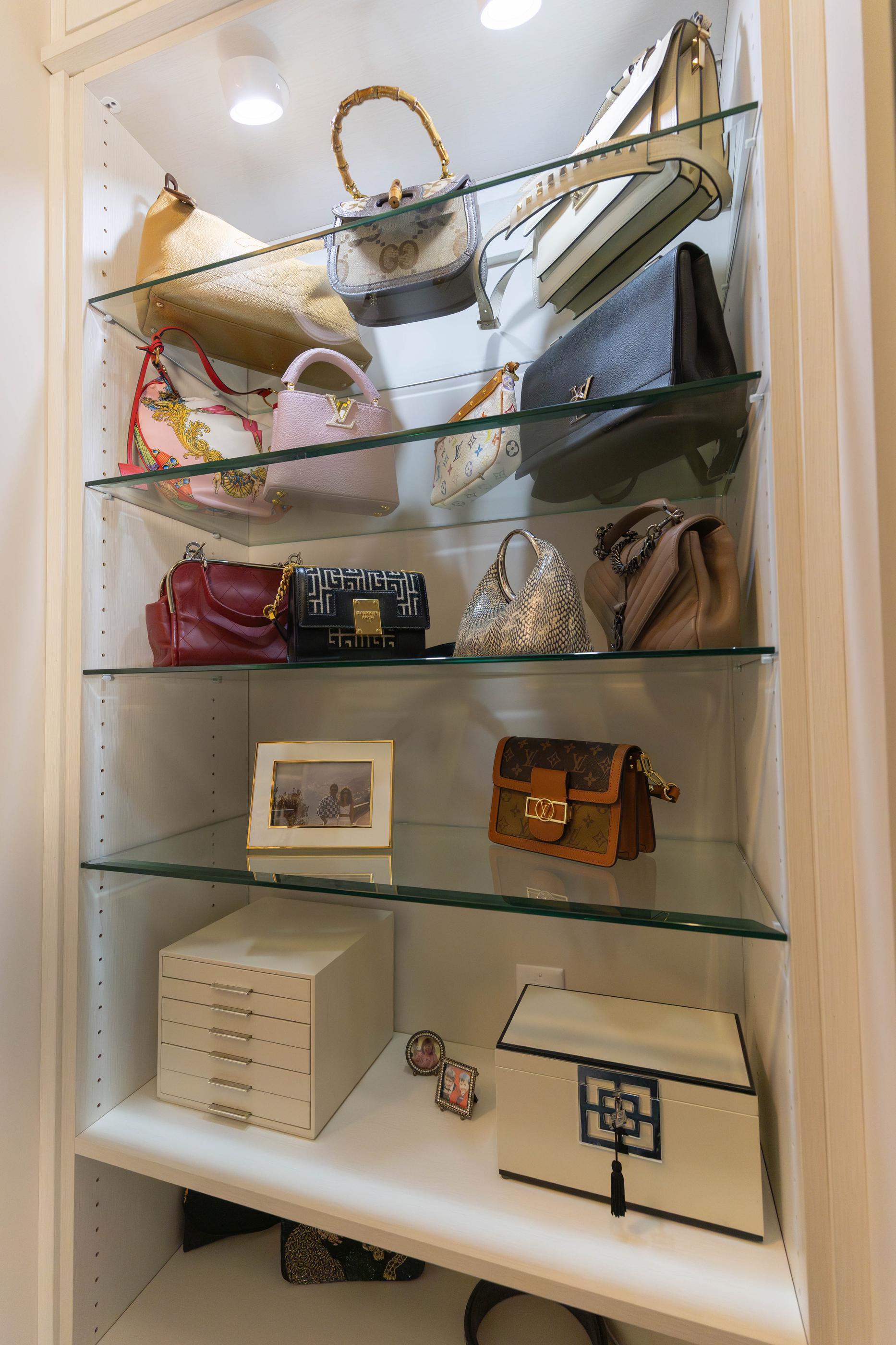 Custom display areas let you show off your favorite handbags, shoes, accessories, and statement pieces. This makes your display feel intentional and special. Creating a special area for your favorite items makes your closet feel more like a boutique than a storage room.