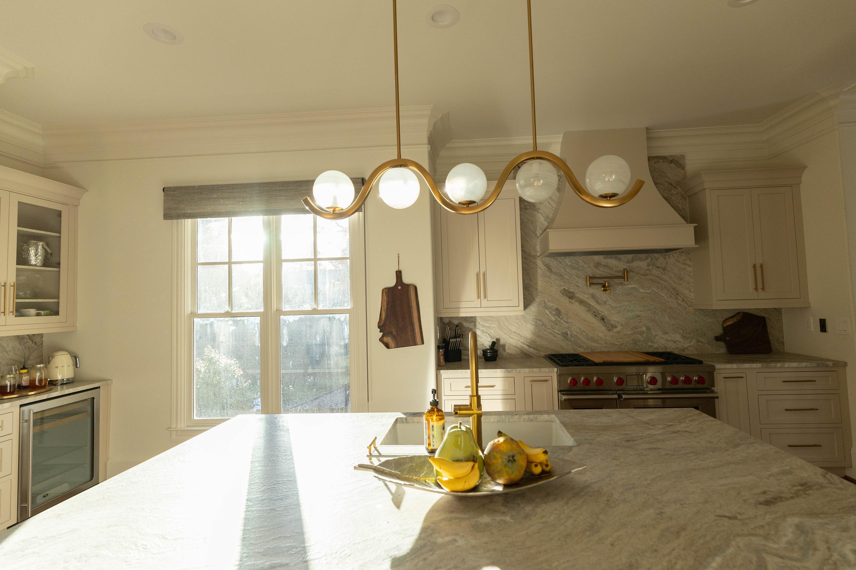 Lighting is more than functional; it’s an opportunity to make a statement about your signature style. Hanging eye-catching light fixtures over a kitchen island or dining area adds character, creates warmth, and helps define the space.