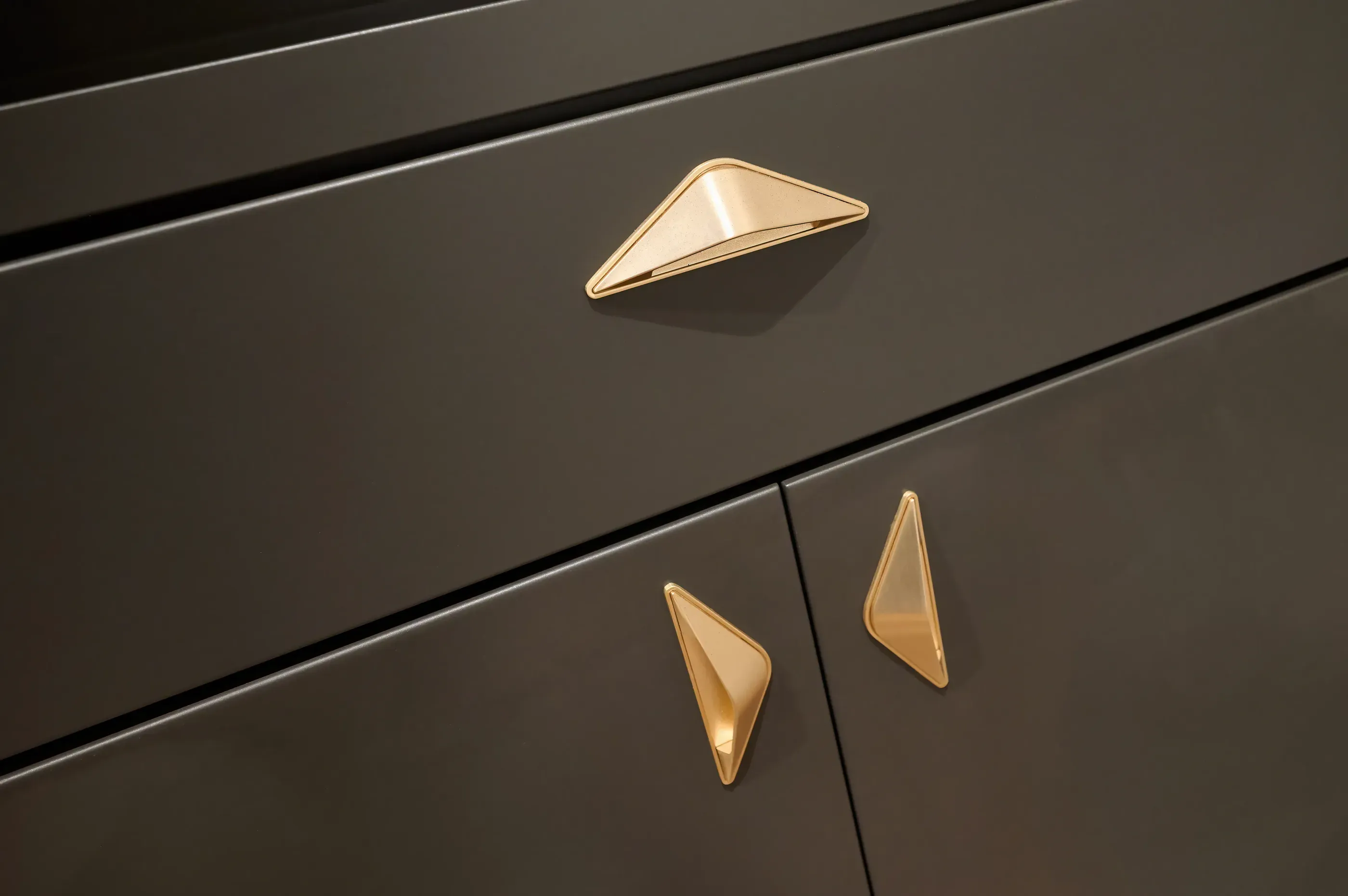Gold can still be bold when it’s designed to pop out from deep, dramatic colors. Adorn dark vanities with hefty gold hardware and send gold’s most classic message: luxury. Scale this concept to your needs with different hardware styles.