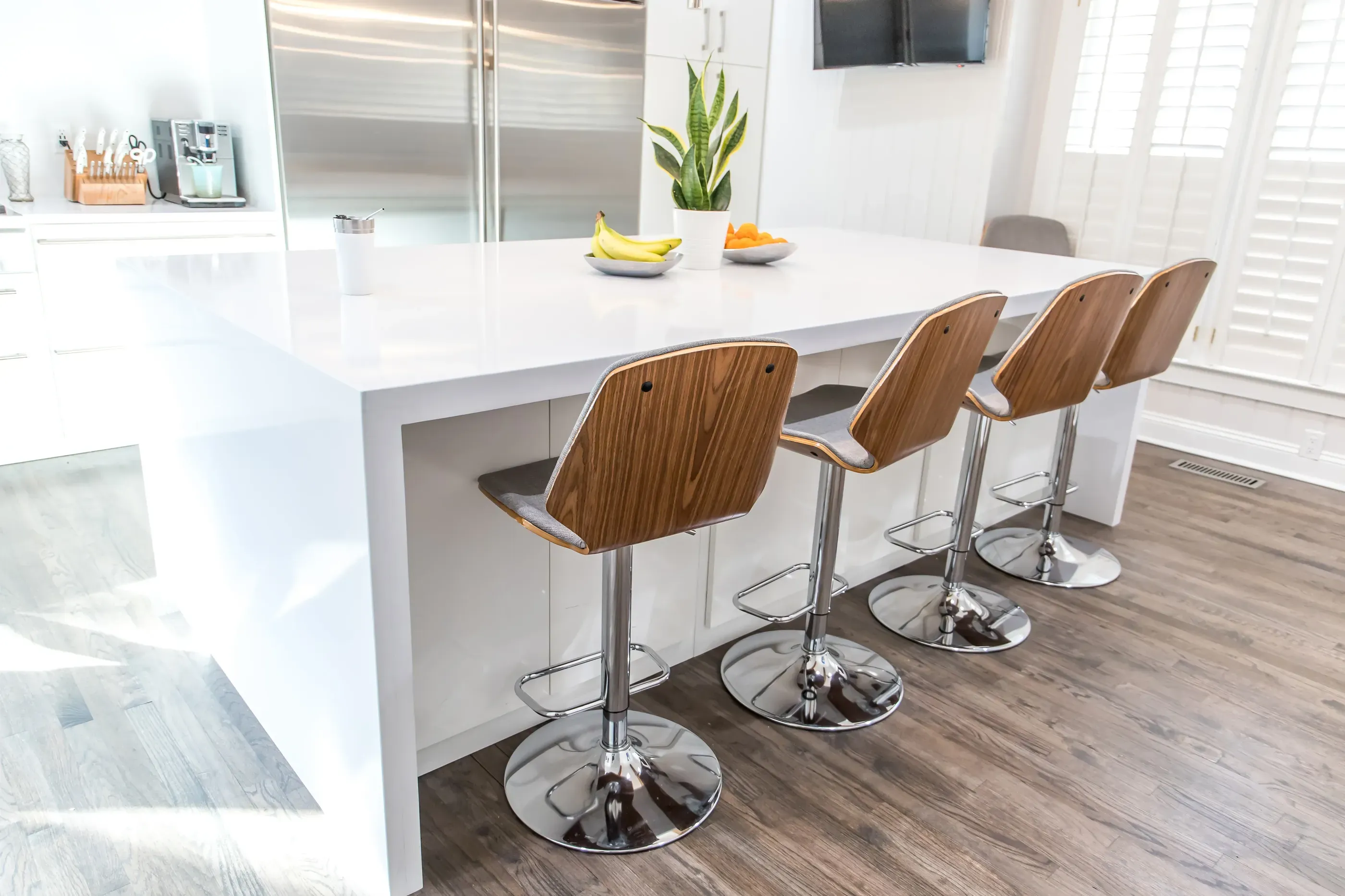 The biggest benefit of engineered hardwood is that it’s more moisture-resistant than solid hardwood. There’s less risk involved with installing it in a kitchen, where drips, spills, and the occasional leak may occur.