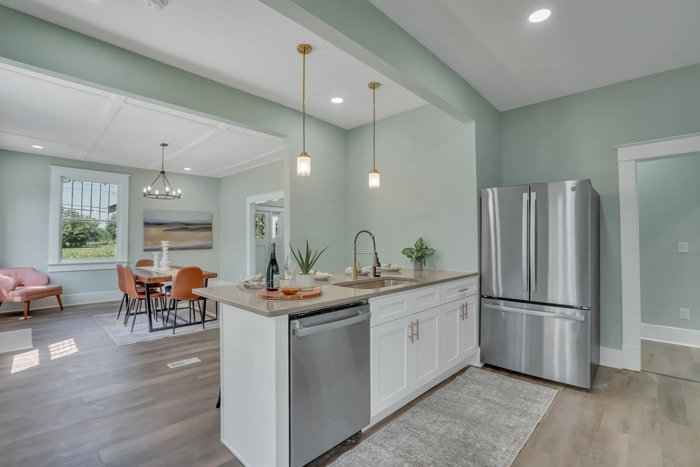 If you must have real wood in a kitchen, this is a great pick. Engineered hardwood is perfect for open concepts and floor plans where you want smooth, high-quality transitions. It’s more than perfect for living rooms, bedrooms, and closets, too.
