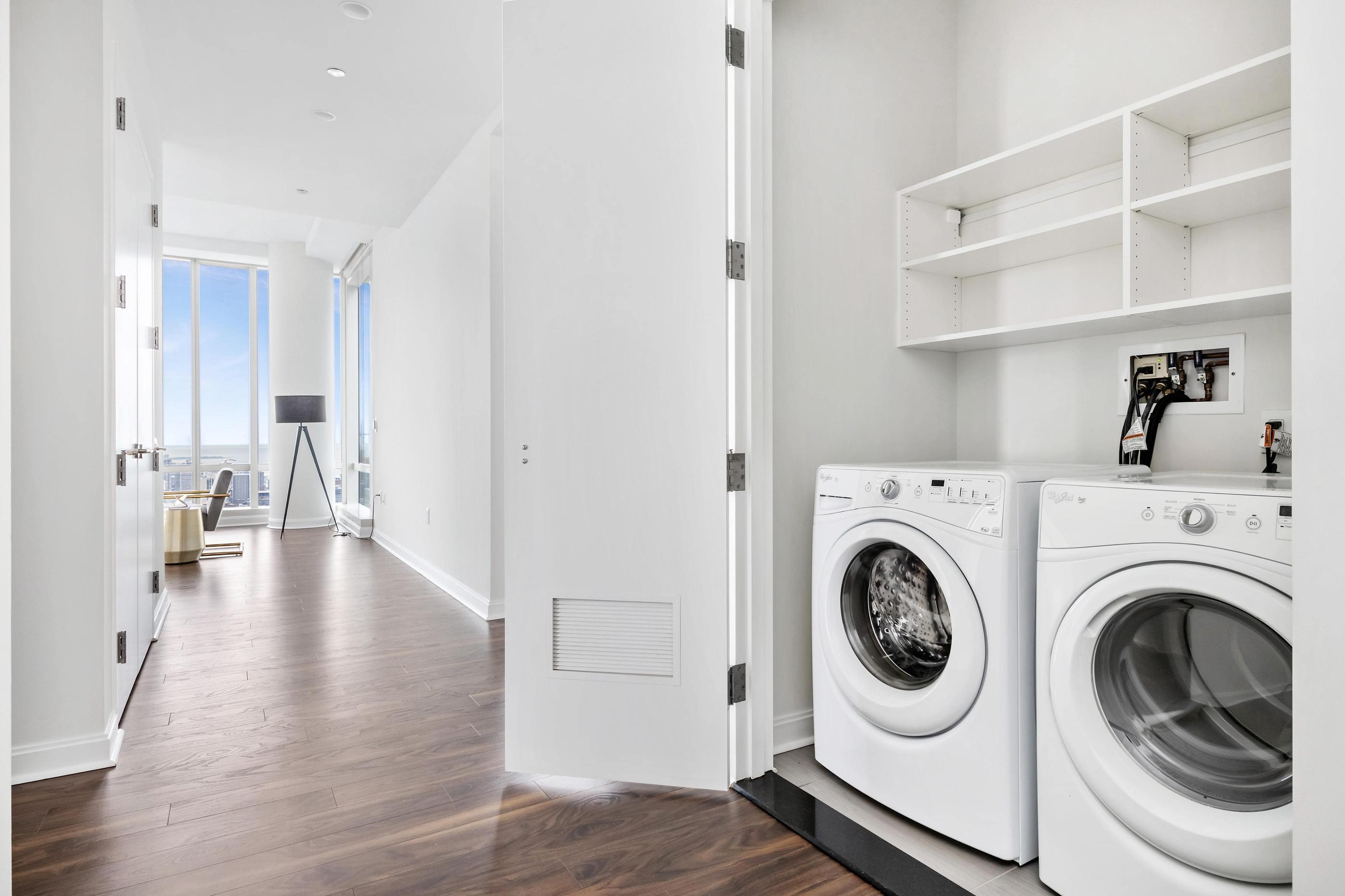Washer, dryer, and what else? How about shaker cabinets, shelving, and custom storage solutions you never dreamed you had enough room for?
