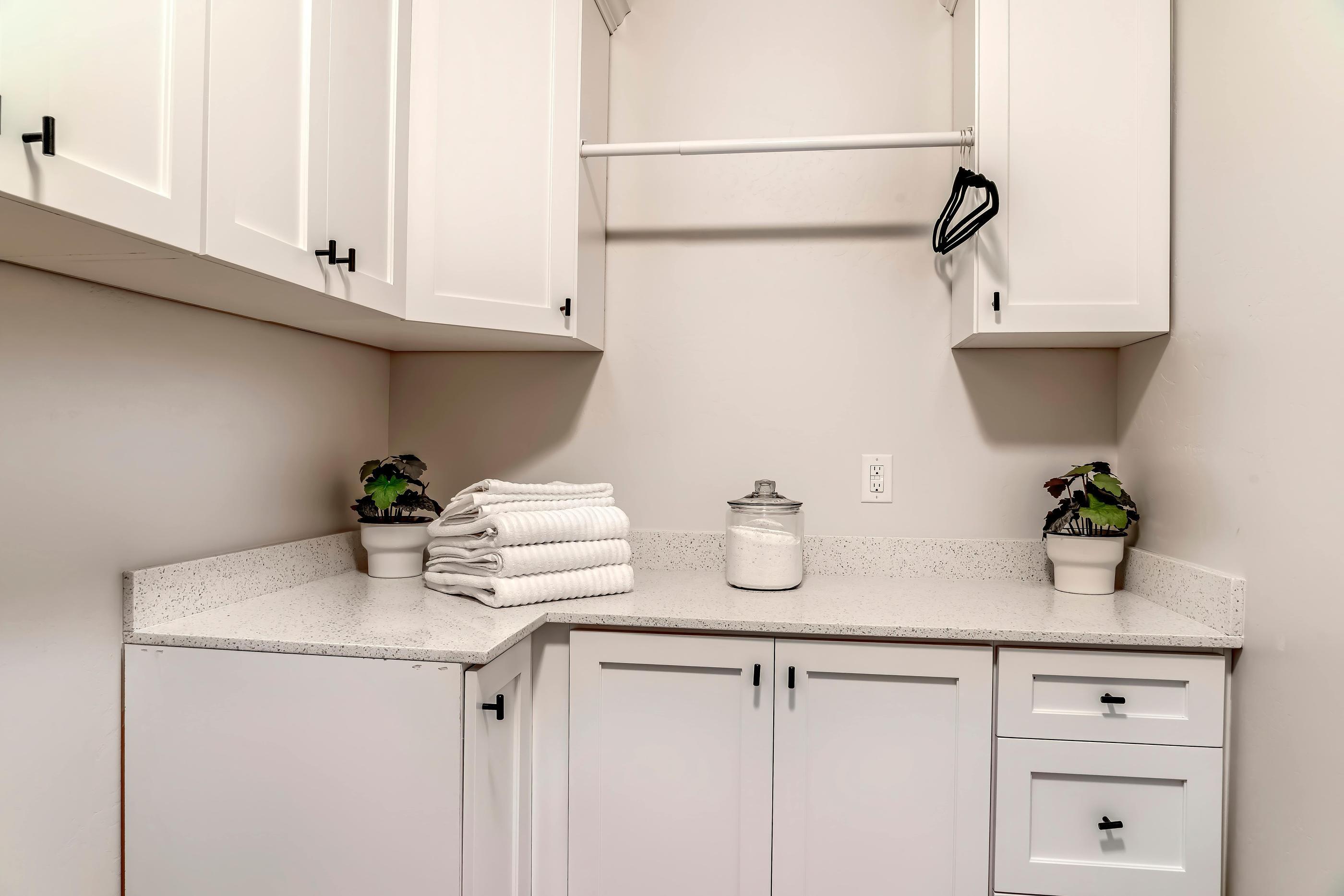 If you’re looking to sell down the road, never underestimate the allure of extra counterspace, even in laundry rooms.