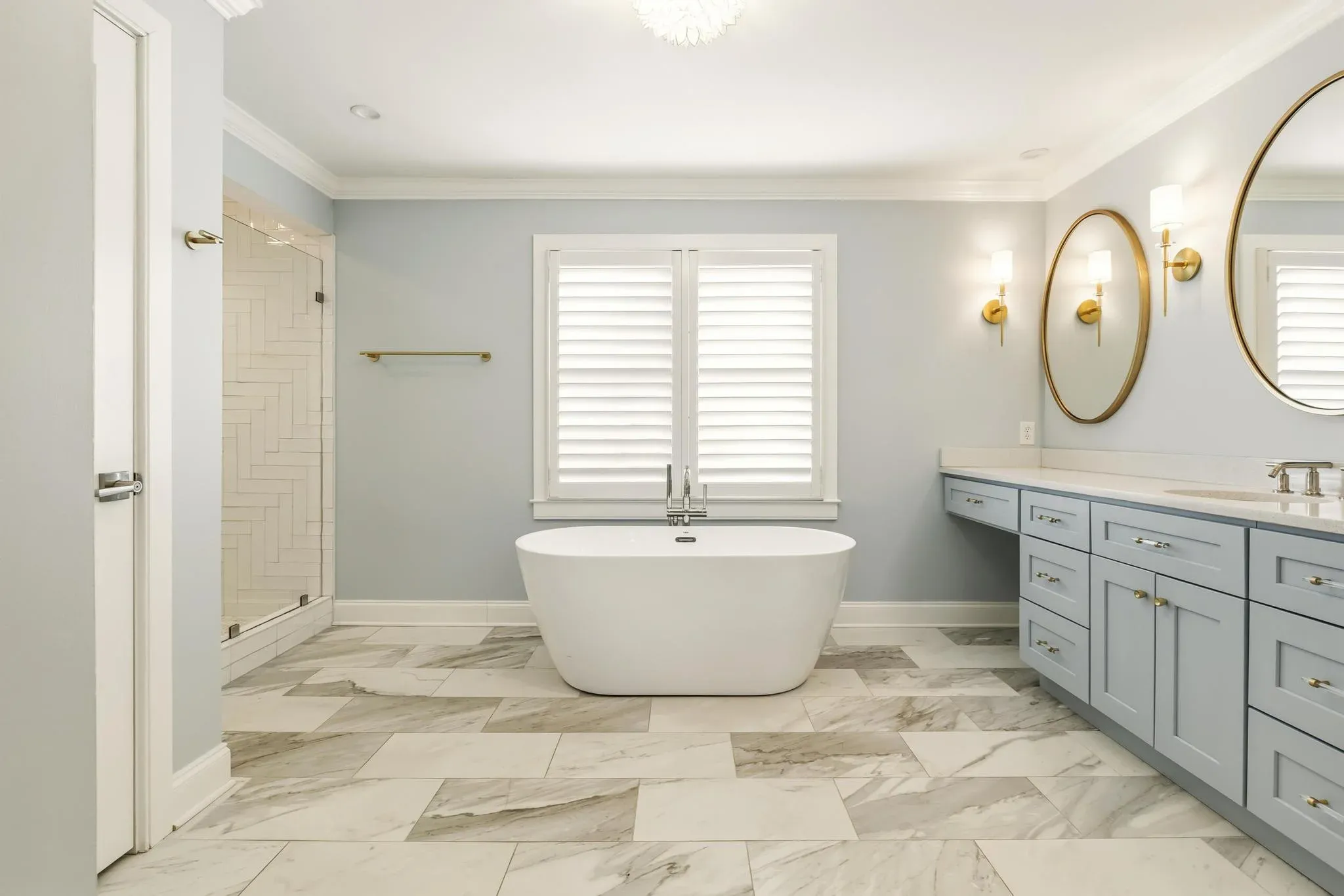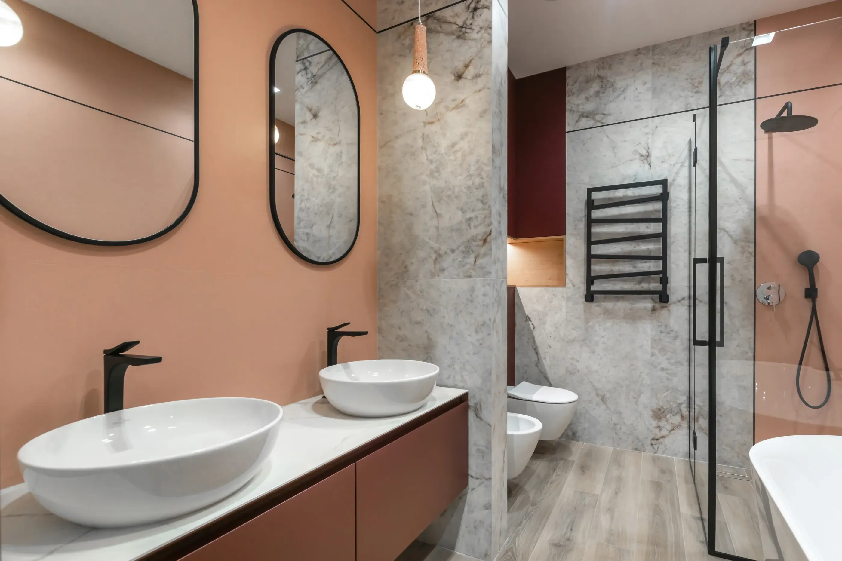 What colors make a bathroom look expensive?