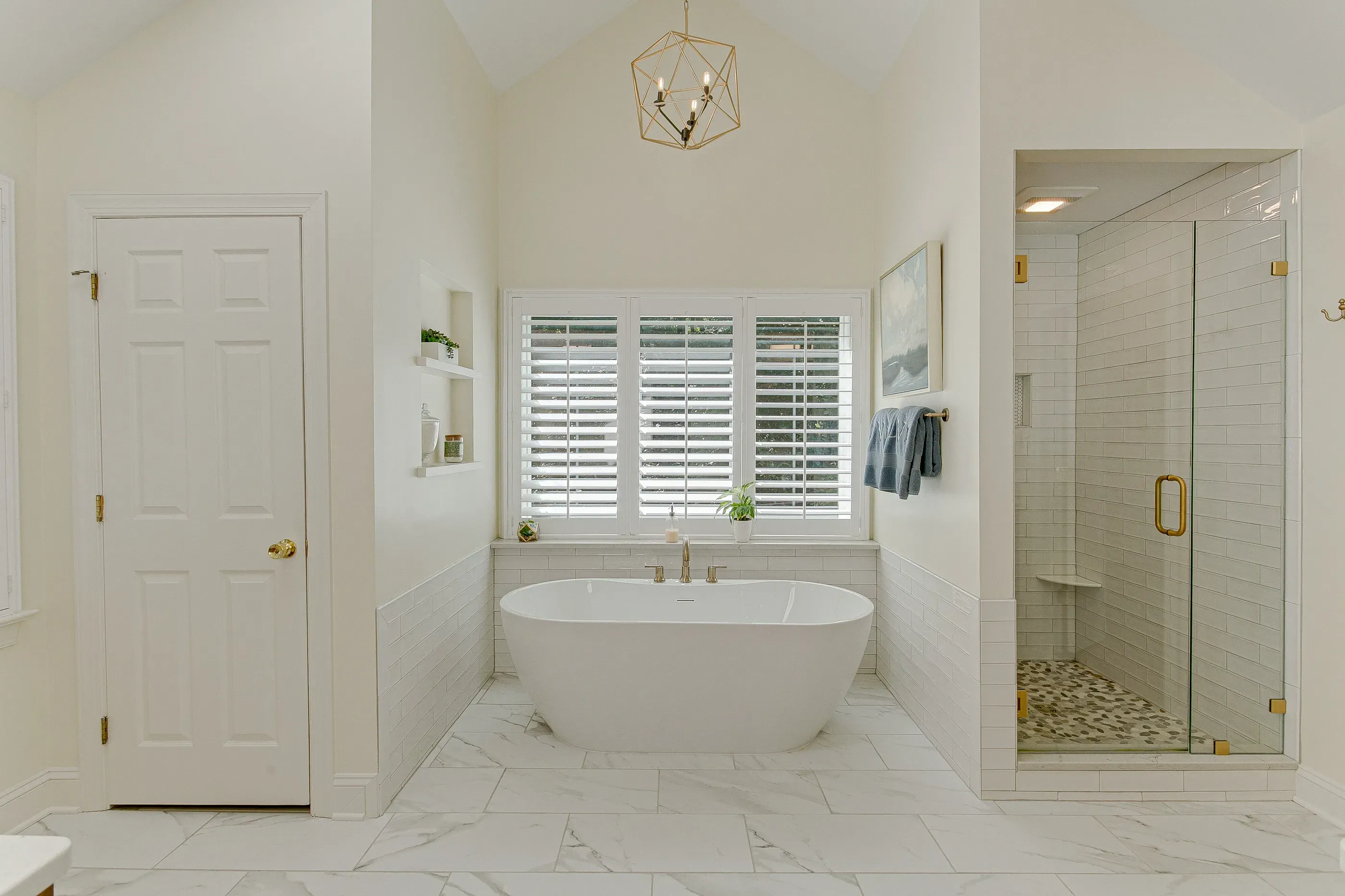 The sterility of stark white may not enhance the great mix of tiles you pick in a spacious master bath. Off-whites, warm whites, and creamier neutrals give you that airiness while staying comfortable.