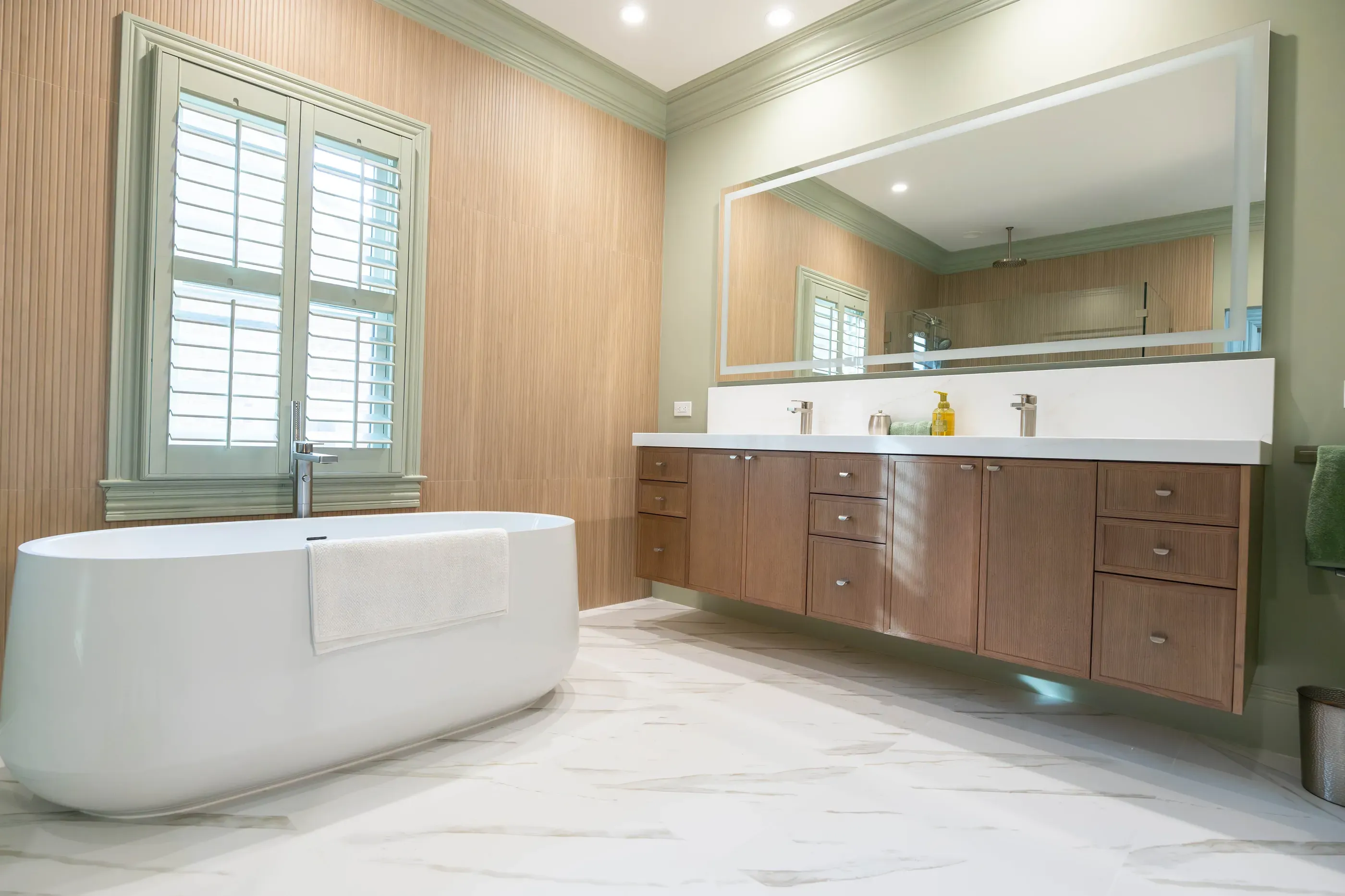 Set your bathroom remodel budget. Include 15-20% for emergencies. Do a rough allocation of the rest of the budget. For example, you decide 50% goes to plumbing, waterproofing, and tilework. |