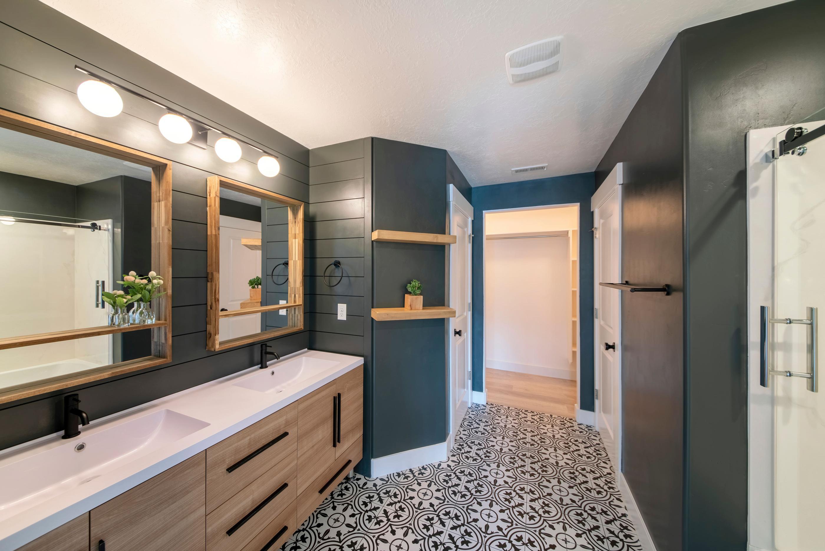Better design tip: Keep your farmhouse sink and a few open shelves. From there, go off-white or another sufficiently clean-looking neutral. You can even incorporate colors like sage or terracotta. All-white countertops may not have the lasting power you’d hoped either, so go for granite or quartz with a pattern and palette you’d love living with.