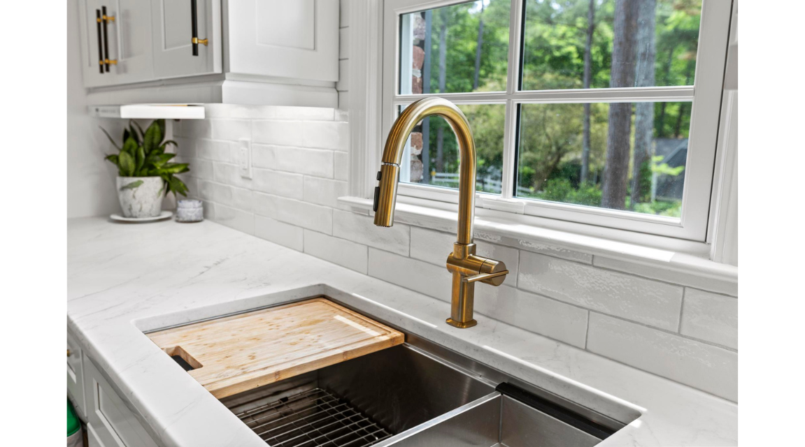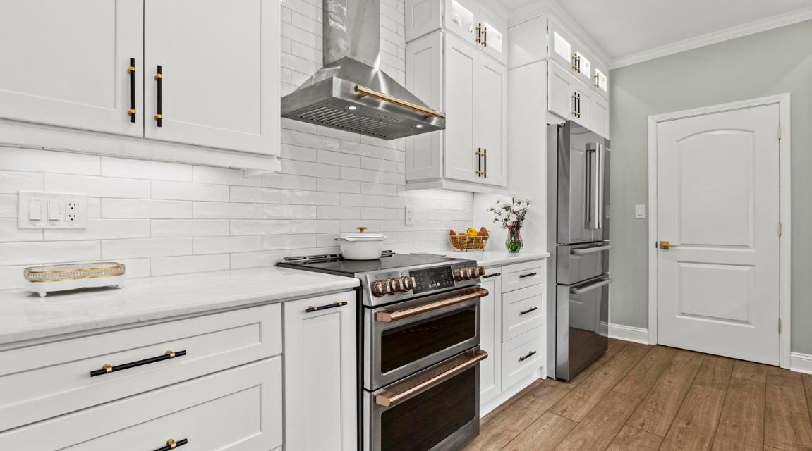 The countertops were upgraded to a quartz that complements the bright cabinetry, while a subway tile backsplash added classic charm. Modern hardware and a brushed gold faucet provide striking accents that elevate the entire look. Energy-efficient appliances and thoughtful lighting completed the transformation, making the kitchen feel open, airy, and inviting. The result speaks for itself.