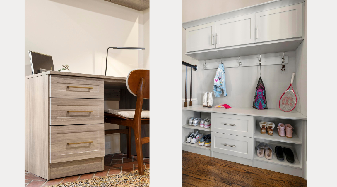 Select from our range of color and style options for cabinets, shelving and countertops. Get designer focused and homeowner favorited suggestions for organization features to make life easier.