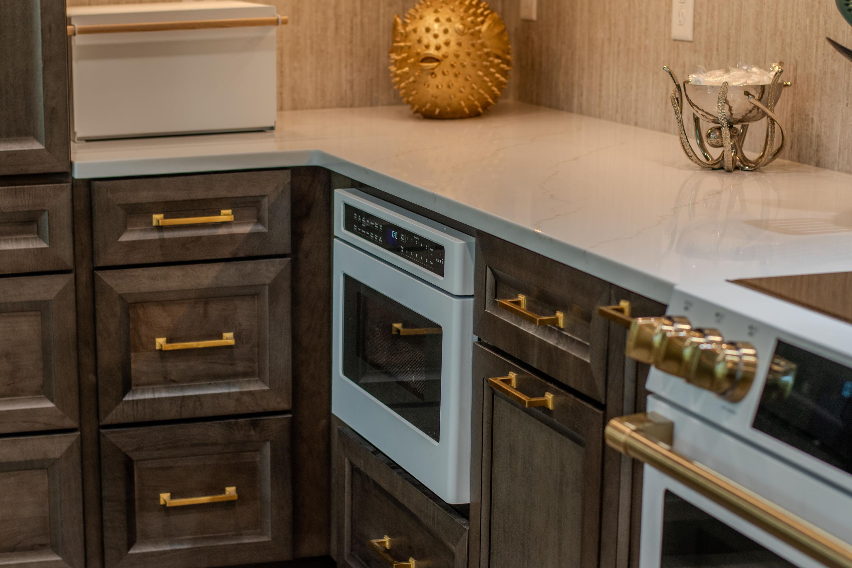 Kitchen with gold hardware