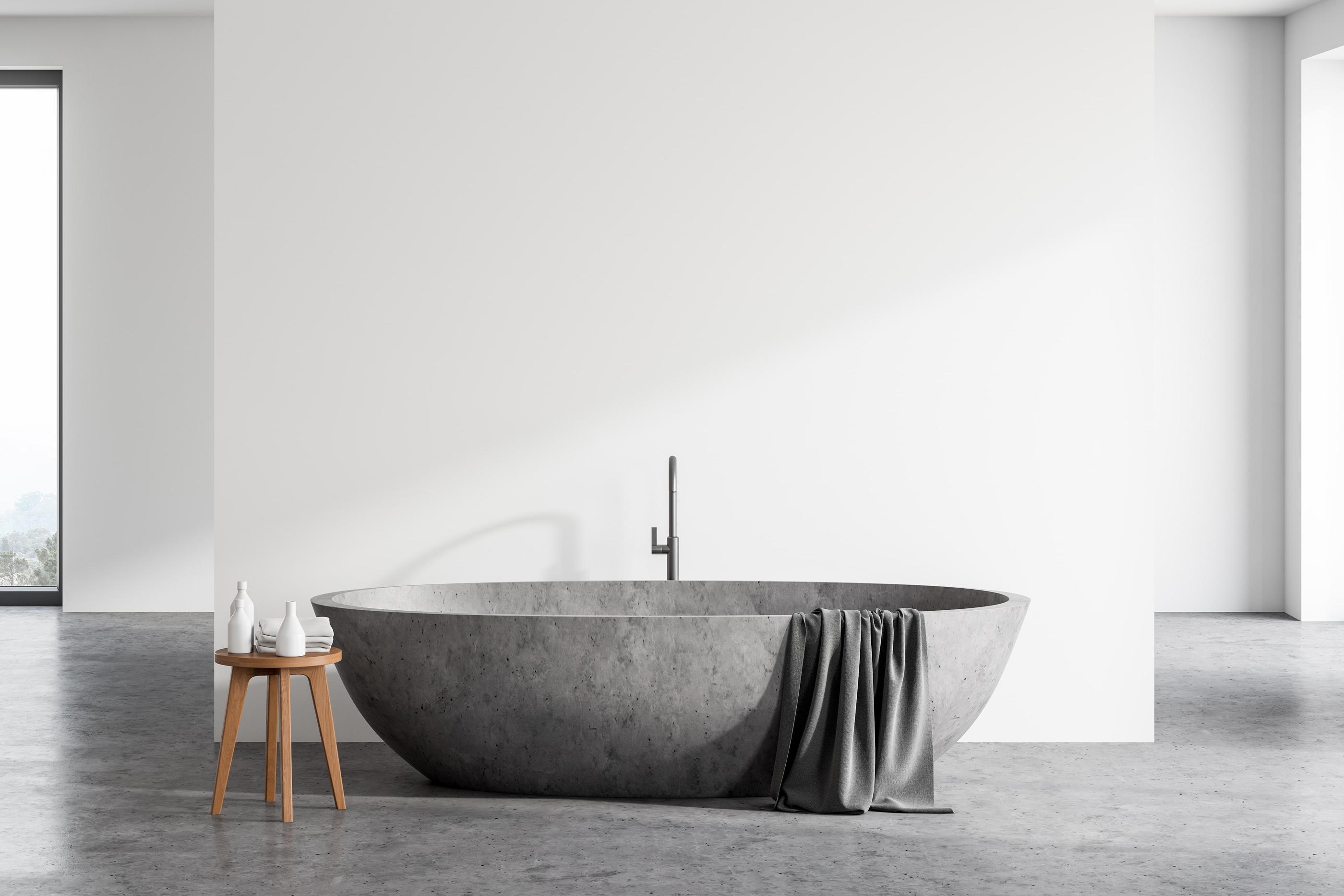 Cement and concrete tubs are popular among those who dislike modern acrylic but love a modern aesthetic. They’re industrial and high-functioning yet organic and naturally textured. Devotees also claim they keep their water warmer for longer.
